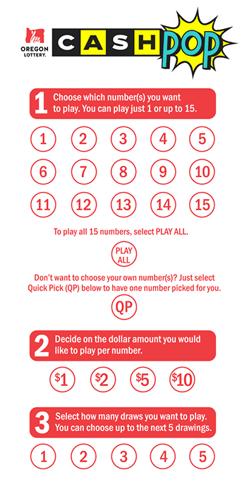 Every hour one winning Cash Pop number from 1 to 15 is drawn. If that number matches a number you picked then you win! Prizes start at five times your chosen purchase price. See below for all the details.