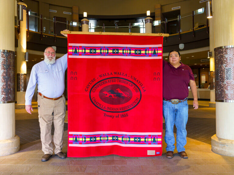 A few miles away on the CTUIR, displays at the Tamastslikt Cultural Institute draw a bright line between past and present by placing regalia next to uniforms from those who served.